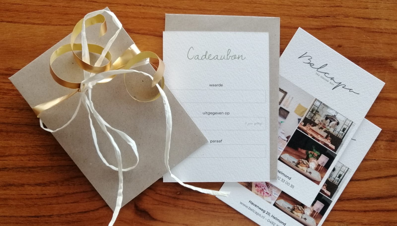 Met de Belcapo cadeaubon schiet je altijd raak. Lever de bon in wanneer je maar wilt, voor een etentje of producten uit onze webshop.
