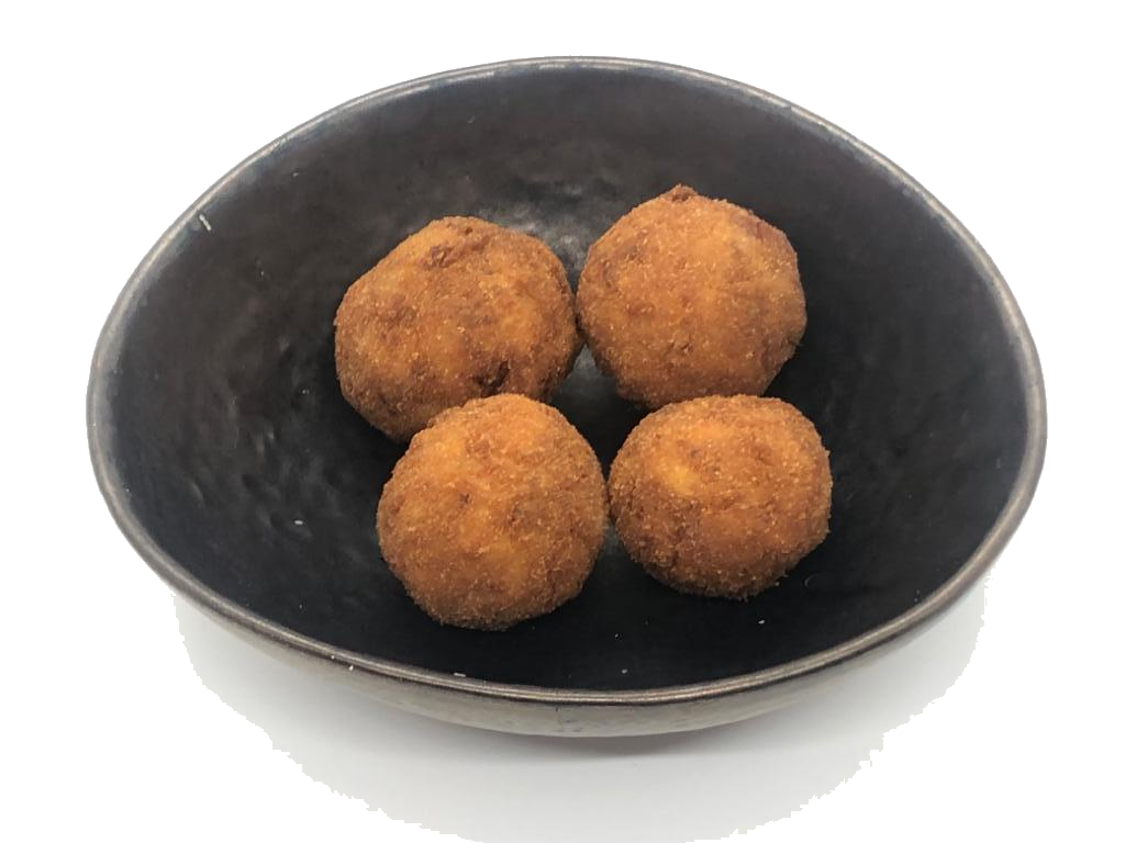 4 stuks, typisch Siciliaanse bitterballen, 2 met ragout en 2 carbonara