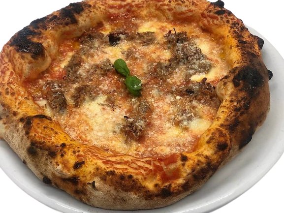 Tomatensaus, Mozzarella Fiordilatte, Pulled Beef, Pecorino Kaas
